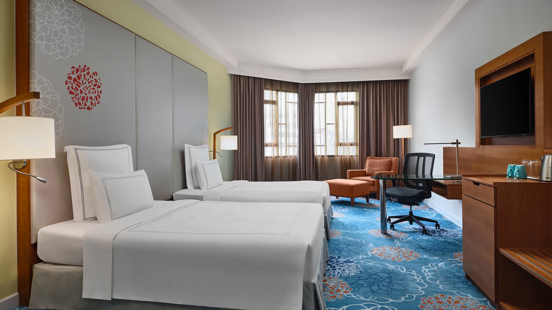 Savour the vibrancy of the Garden City from this open layout room, boasting a sleek ensuite and two double beds perfect for families travelling together.
